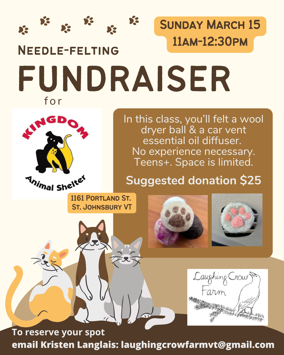 Felting for the benefit of animals & art… Visit my “Workshops” page for current fundraisers. Here are the organizations I support (and I hope you will too)!